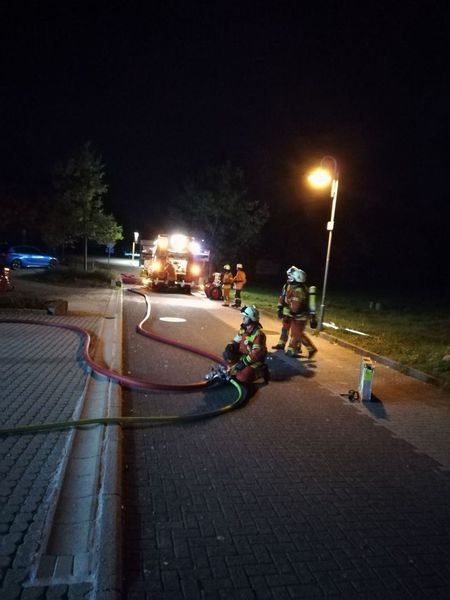 Garage eines mehrgeschossigen Wohngebäudes bekämpft und eine Person aus dem Obergeschoss gerettet werden muss. Sowohl für die Rettung der Person über die Steckleiter, als auch für die Brandbekämpfung
